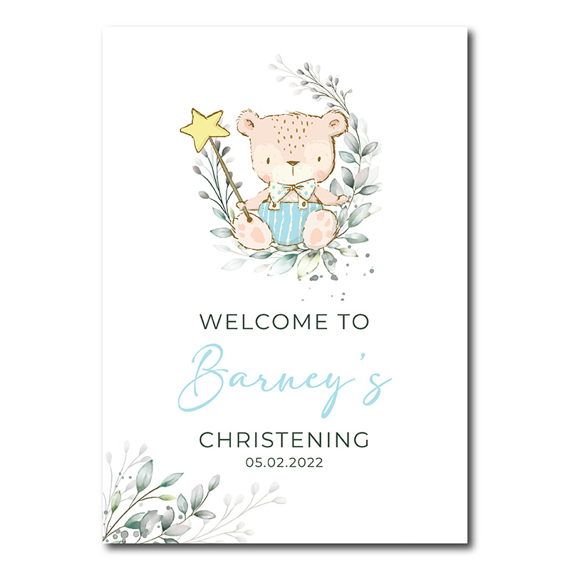 Christening Welcome Sign – Blue Teddy