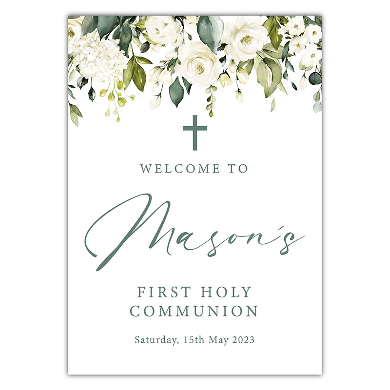 Beautiful personalised welcome signs to greet the guests to your Communion Party. Perfect for a centerpiece display or as an addition to your party decor.