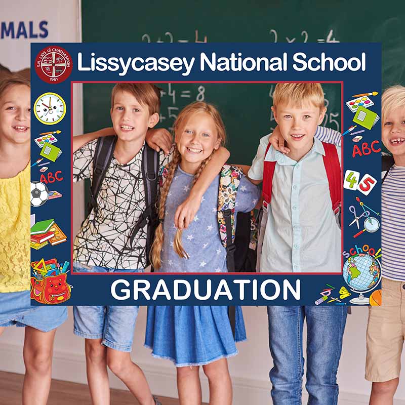 Our photo prop frames are made using corriboard, which is a strong rigid light weight plastic. The inside panel is cut out of the board, but is kept in it place for strength during delivery. These frames are waterproof and can be used for indoor and outdoor purposes.