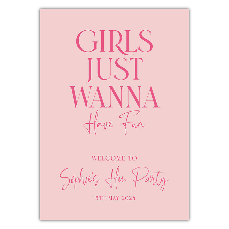 Hen Party Sign – Girls Just Wanna Have Fun Pink