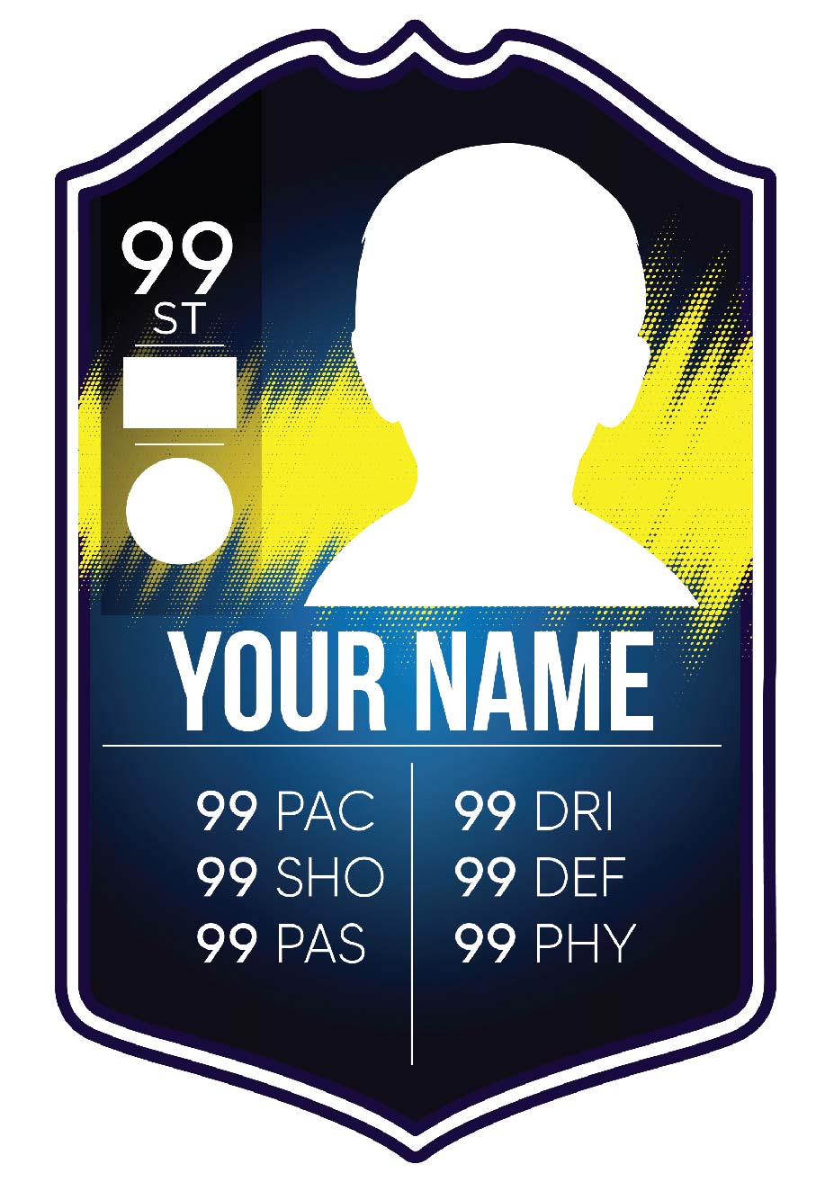 Our Personalised Football Card are perfect for football crazy fans and make a great gift. Customised to your specification with your own photo, name, stats, country and team badge, your card will be totally unique to you. We can also provide these with your favourite player if preferred.