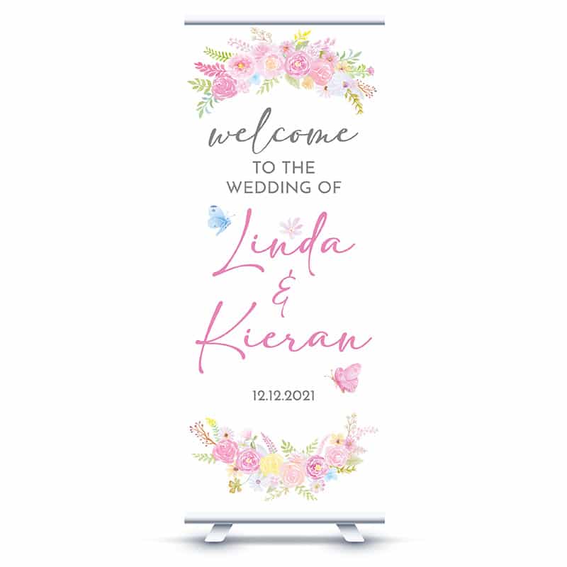 High quality wedding pull up banners, the perfect addition to your special day decoration. All our banners come fully assembled with a free carry bag. All wording and colours are customisable in the boxes below.