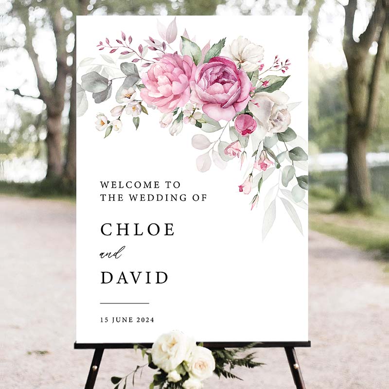 Welcome your guests with one of our stylish wedding welcome signs. These are a popular wedding decoration and the perfect introduction for your big day.